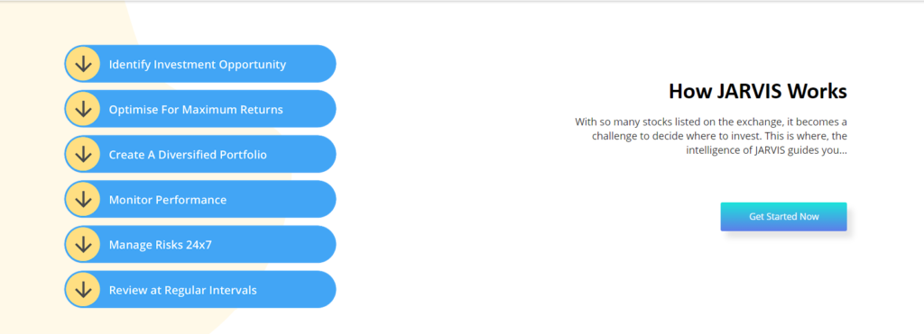 Stock Advisory The JARVIS Philosophy “An investor’s worst enemy is not the stockmarket but his own emotions” JARVIS is designed to eliminate this emotional aspect of investments. By using Artificial Intelligence we help you create your own personalized Equity Portfolio. Invest Now Know what is JARVIS Know what is JARVIS Start Your Service Now Start No Demat account, No WorryOpen your low cost Demat account Open Now